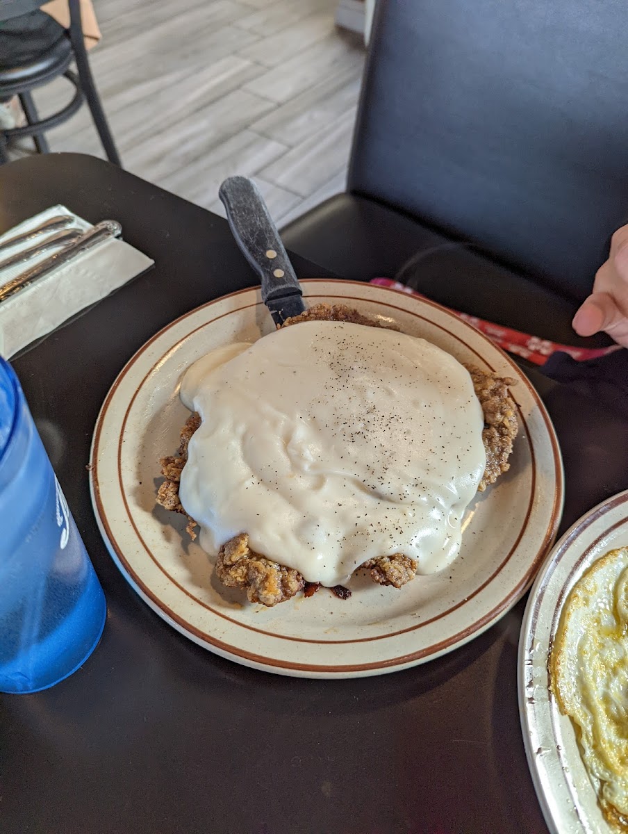 The menu speaks to classic American comfort food with hearty breakfasts like biscuits and gravy, chicken fried steak, and a variety of omelettes served with country potatoes. If you visit for lunch, their sandwiches and burgers provide solid, satisfying options without fuss — think club sandwiches, bacon cheese burgers, and grilled ham & cheese. Portions tend to be generous and priced reasonably, making it a practical choice rather than a splurge.